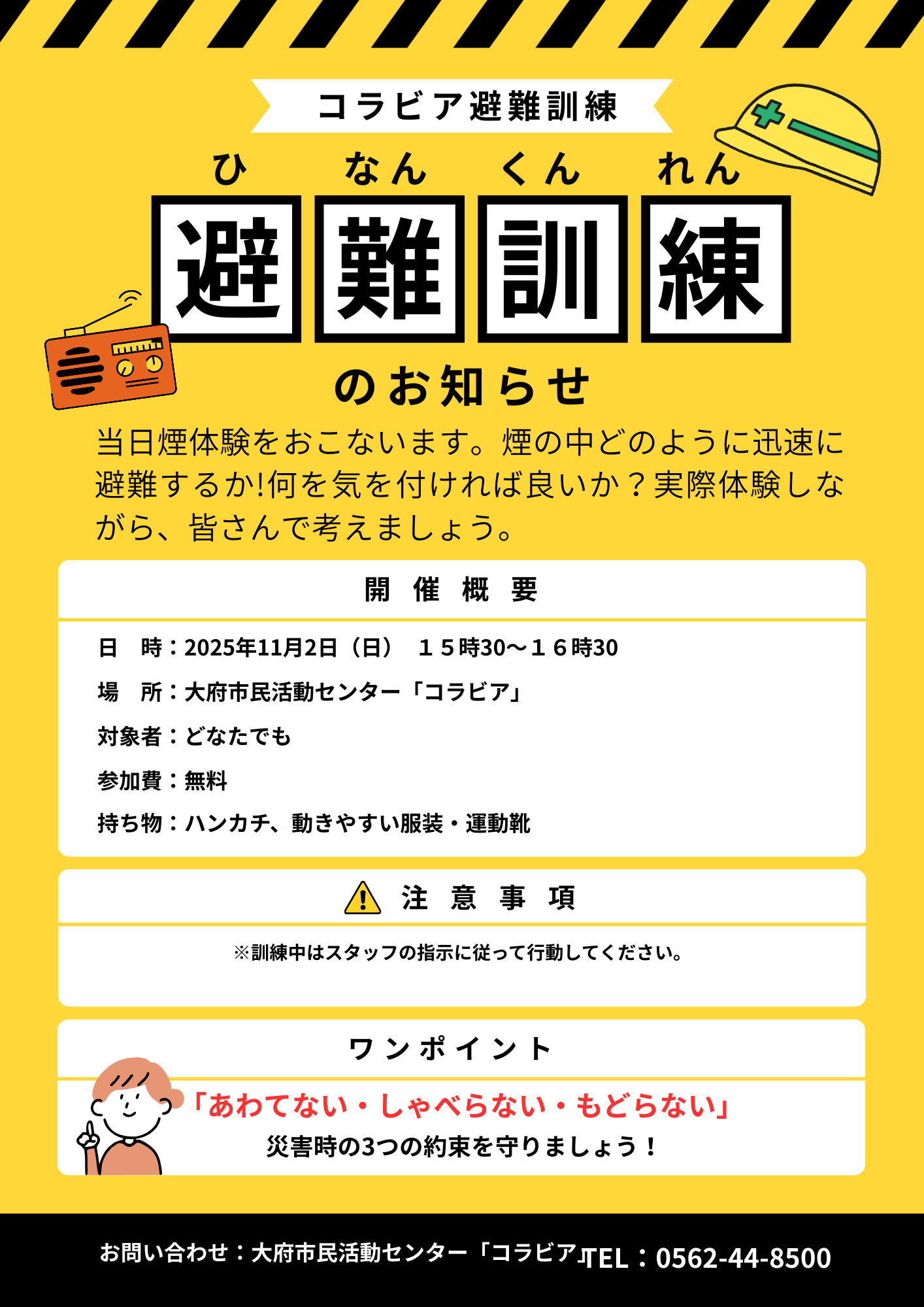 ●11月2日(日) 15:00~15:30 コラビア避難訓練「避難訓練」